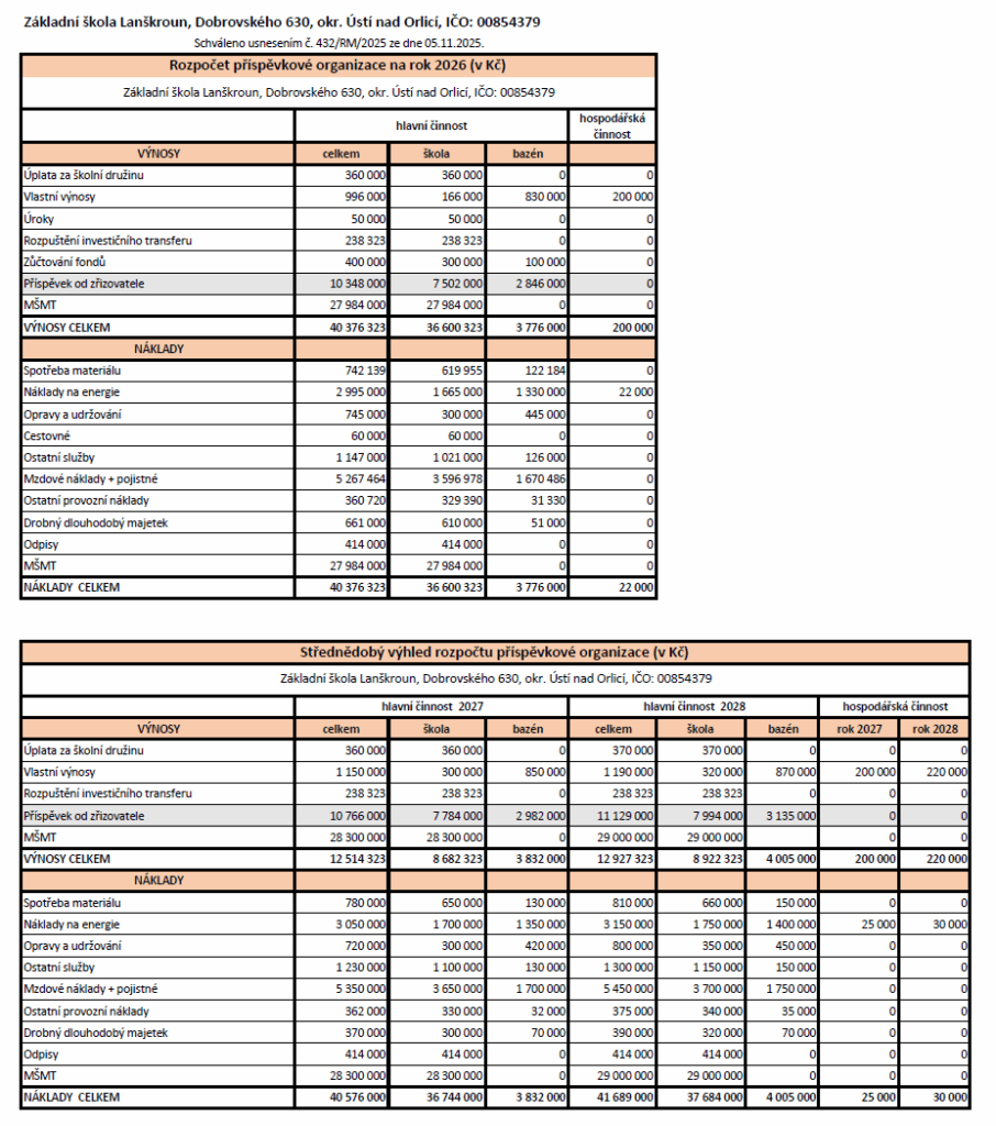 Rozpočet na rok 2026 a střednědobý výhled rozpočtu