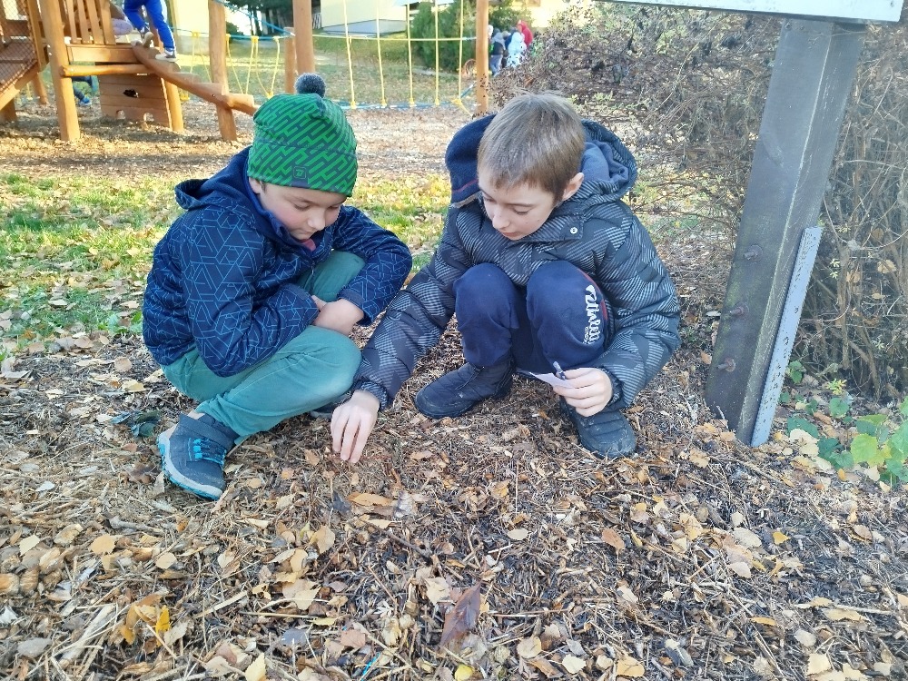 Na jednotlivých stanovištích žáci poznávali podzimní barvy, zkoušeli trefu kaštanem, rozeznávali plody stromů, zkoumali stopy v blátě, stavěli domečky pro skřítky a také se dozvěděli, která zvířata se na zimu ukládají k spánku.