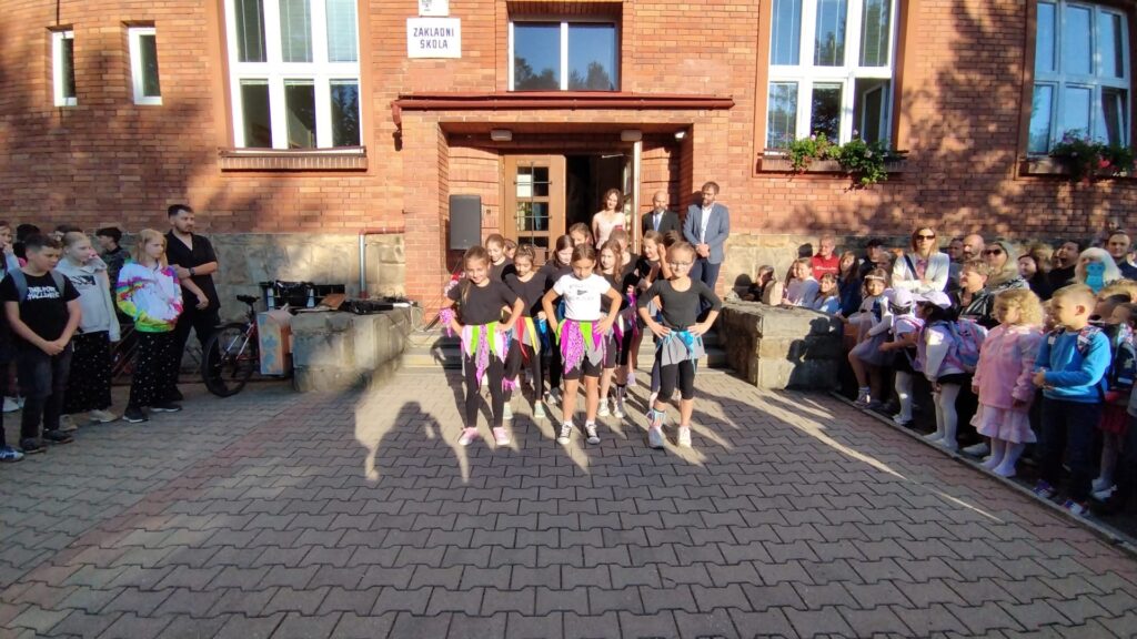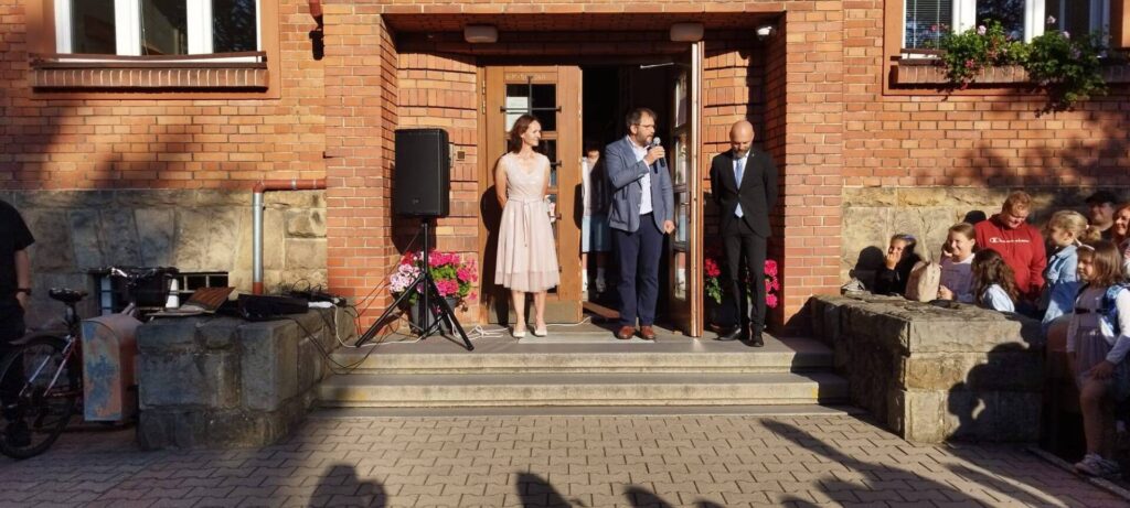 Jako každoročně jsme se i dnes všichni sešli před školou. Přivítal nás pan ředitel Pavel Resler a starosta města Radim Vetchý. Slavnostní ráno zpestřil svým vystoupením taneční soubor Sluníčko. Poté jsme vyvěsili školní vlajku – symbol toho, že pro úspěšné vzdělávání našich žáků je důležitá spolupráce školy, rodičů i žáků samotných.